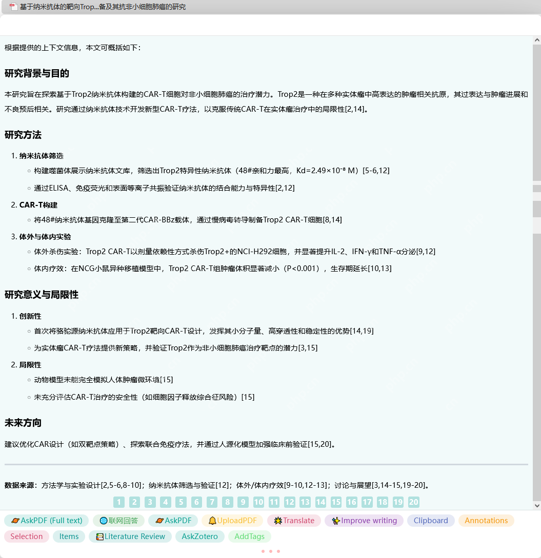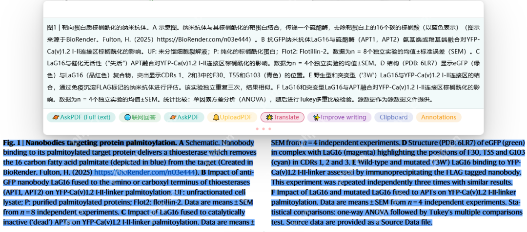 文献速读:选择文献后,点击“AskPDF”,系统会自动分析文献内容,提取关键信息,生成一份简明扼要的文献摘要。