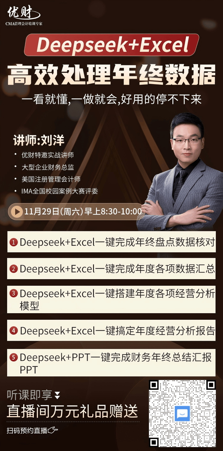 扫码即可报名【DeepSeek+Excel高效处理各种财务年终数据】直播