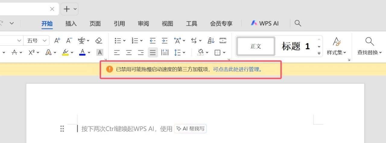 安装完成后打开wps,我这里就以wps2024为例,打开word之后会提示已禁用第三方加载项。
