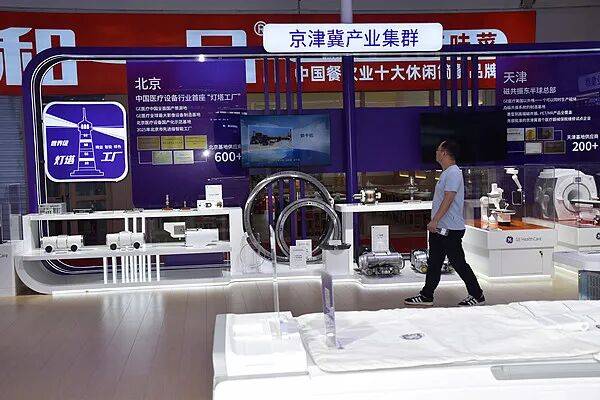 7月20日,北京,全球首个以供应链为主题的国家级展会——第三届中国国际供应链促进博览会正在展出。图为京津冀产业集群。图源:视觉中国